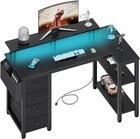 Black L Shaped Gaming Desk w LED Lights Power Outlets 47in