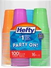 Party On Disposable Plastic Cups, Assorted, 16 oz. 100 ct.