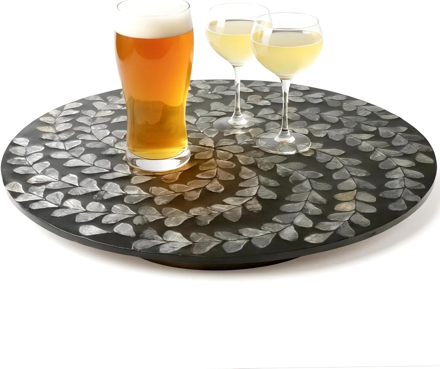 • Package Details: Includes 1 round mother-of-pearl countertop turntable tray measuring 13.8″ x 13.8″ x 1″ (35 x 35 x 2.5 cm). Tray thickness: 0.2″; bottom turntable height: 0.79″.