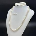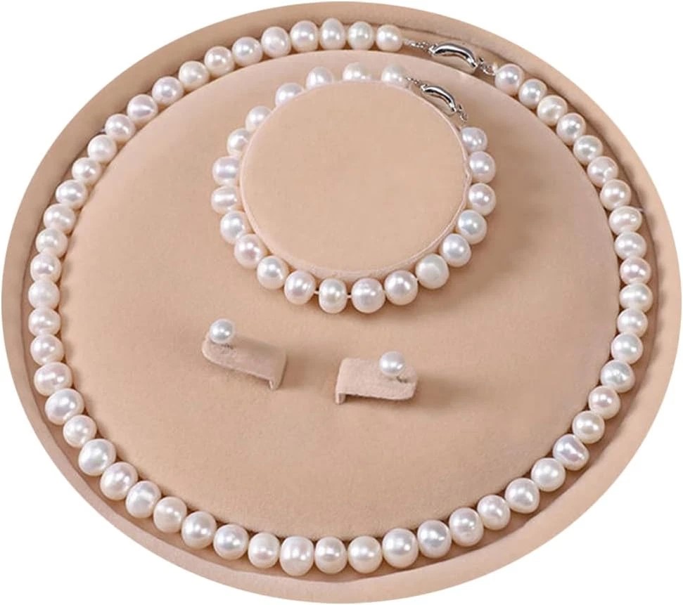 - Elegant 3-Piece Set: Includes an 18″ pearl necklace (7.5–8.5mm), a 7.5–8″ bracelet, and matching 9–10mm pearl earrings for a timeless, coordinated look