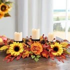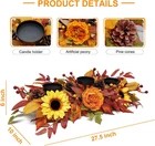 Fall Sunflower Candle Holder Centerpiece – 29” Autumn Table Decoration with Pine Cones, Faux Leaves & Berries, 3 Metal Candle Plates for Thanksgiving Dining Table Décor (Candles Not Included)
